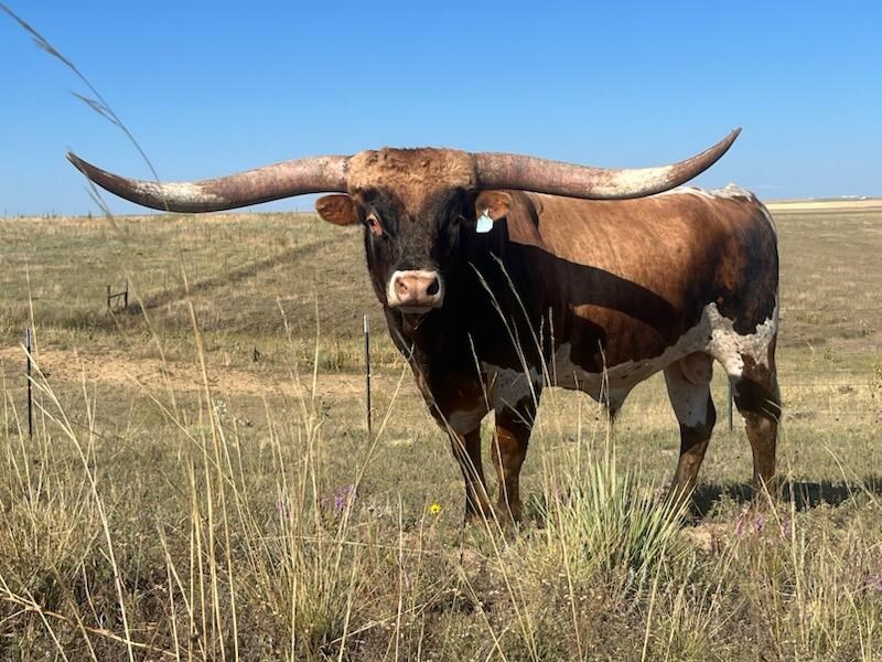 M2 BANDOLERO HAS FLASHY BRINDLE CALVES ON THE GROUND AND PUTTING A LOT OF FRAME AND EARLY HORN GROWTH ON THEM. JUST FINISHED HIS SECOND BREEDING SEASON.