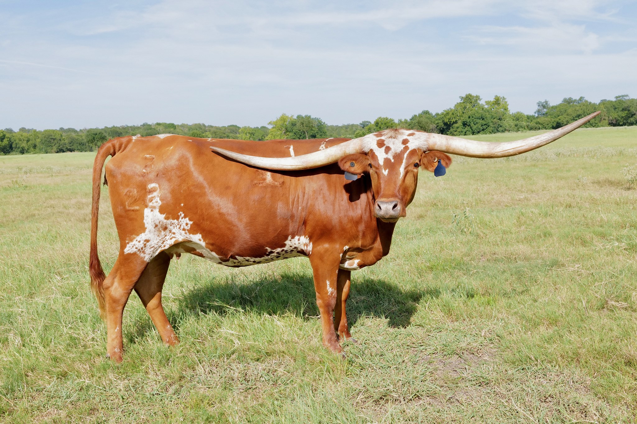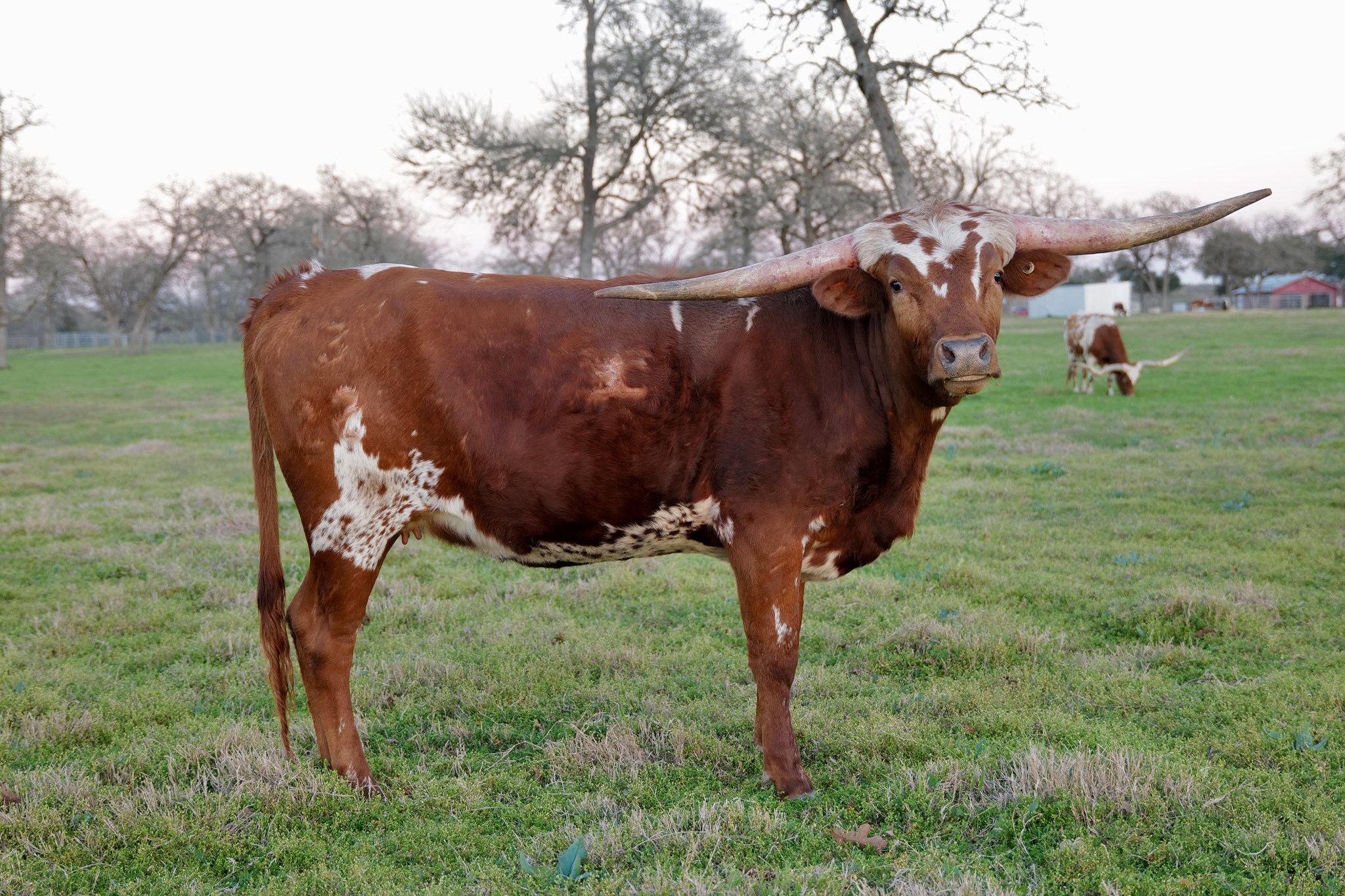 big bodied, long horned correct cow.