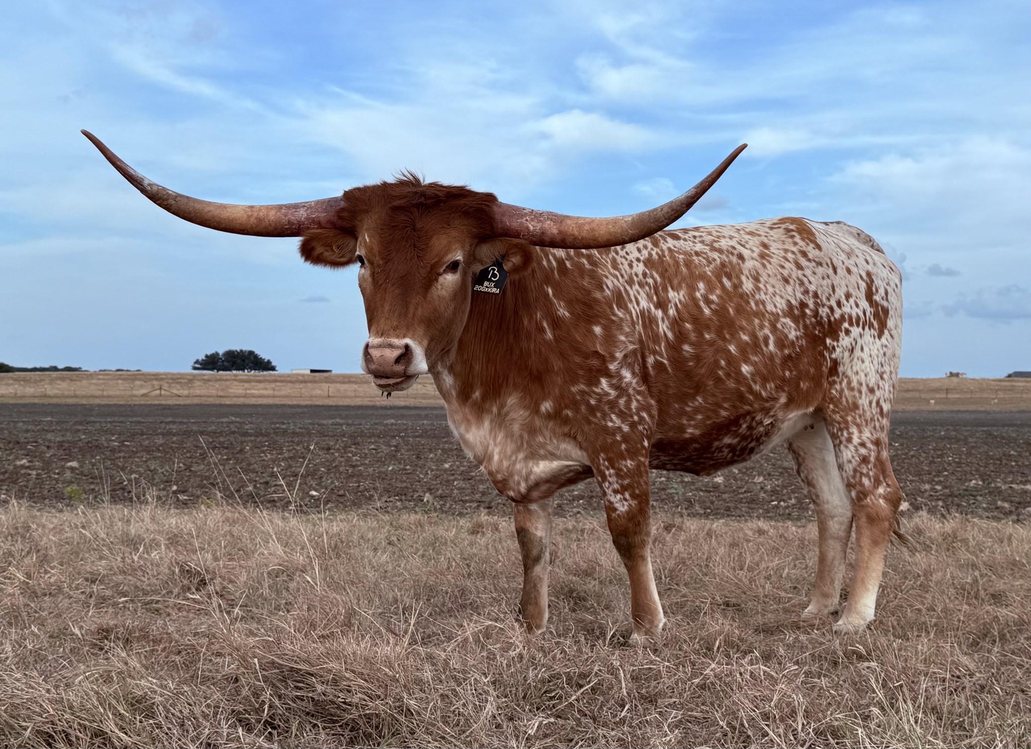 This young heifer combines the horn, color, and maternal depth of BL Kira 952 with the proven performance and refinement of Hubbells 20 Gauge. Her pedigree is stacked with legendary sires including Concealed Weapon, JP Rio Grande, Expedite and Cowboy Tuff Chex β a lineup that ensures both predictability and profitability. 20 Gauge daughters are prized for their feminine structure, horn growth, and consistent color,. Sheβs bred to BUX Big Bux bringing Rebel HR, Over Kill, and Hunts Command Respect bloodlines together β a true powerhouse of size, horn, and proven production. His sire, Rebel HR, has made a name across the industry for throwing exceptional color and horn genetics. This heifer and her expected 2025 calf by BUX Big Bux are a textbook example of modern breeding β elite genetics, performance potential, and investment value. Whether youβre building a foundation herd or adding power to an established program, this pairing brings both immediate appeal and long-term returns.