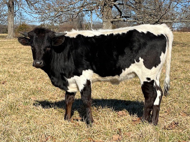 Our consignment to the February Hired Hand Online sale is a Fancy TRUE BLACK daughter of the late HUBBELL'S 20 GAUGE and MTR SITTIN SIOUX, the Queen of our SIOUX Program. SARAH SIOUX is a full sister to MAE LU SIOUX and SIOUX ZEE SIOUX, both Futurity and Horn Showcase winners and producers with TWISTY Horn Measurements of around 100 inches. SARAH has the gorgeous TRUE BLACK AND WHITE color, show class conformation, and great horn direction. Fully weaned, vaccinated and in your hind pocket. Look at this family on our website and come visit ...